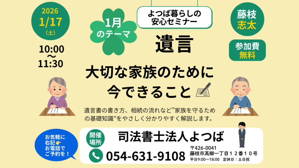 ◇開催場所 司法書士法人よつば 藤枝市高柳一丁目12-10